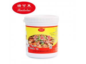 7、翻炒幾下后加入干鍋香、干紅辣椒和郫縣豆瓣,炒出紅油。
