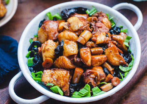 主料:雞半只、青蒜3棵、木耳1小把、筍干50克、蒜10瓣